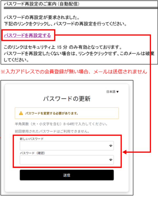 3.入力したメールアドレスに「パスワード再設定のご案内」メールが届きます。